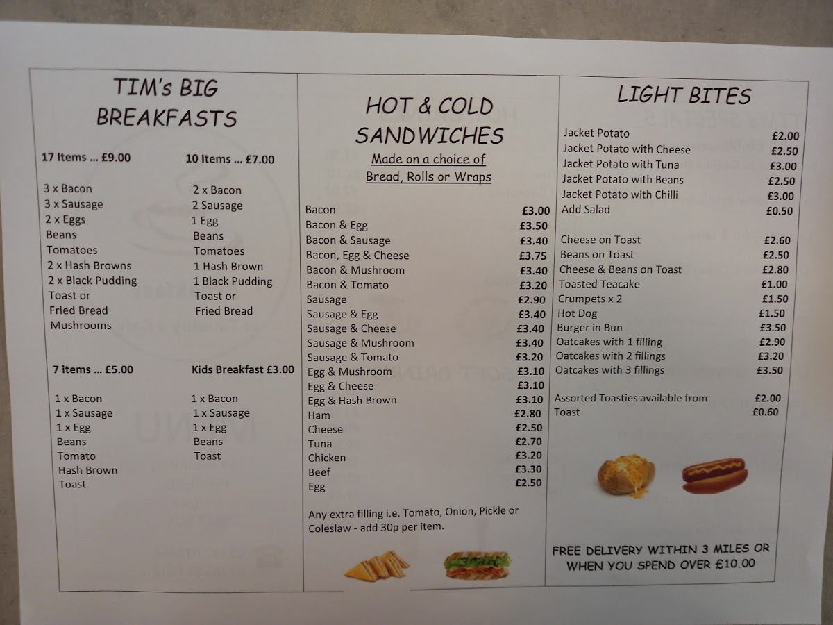 Step inside and immerse yourself in the warm and inviting atmosphere that embodies a classic British café. The décor is simple yet cozy, allowing for plenty of comfortable seating—ideal for families or gatherings of friends. The heart of Timothy's shines brightly through its menu, offering a diverse selection of popular breakfast options that cater to all tastes. A standout is their full English breakfast, boasting a whopping 17 items for under £10! Imagine sinking your teeth into perfectly cooked bacon and sausages, alongside crispy hash browns, fragrant baked beans, and succulent tomatoes. This is a feast that will leave you both satisfied and smiling.
